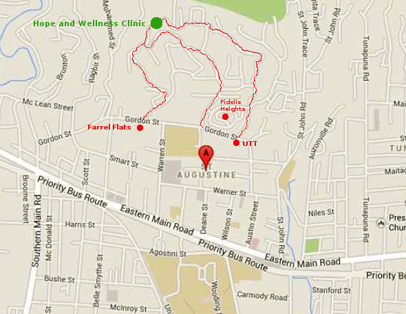 From Churchill Roosevelt Hwy merge onto ramp heading North on the Uriah Butler Hwy taking you to the Eastern Main Road via Mt. Hope.